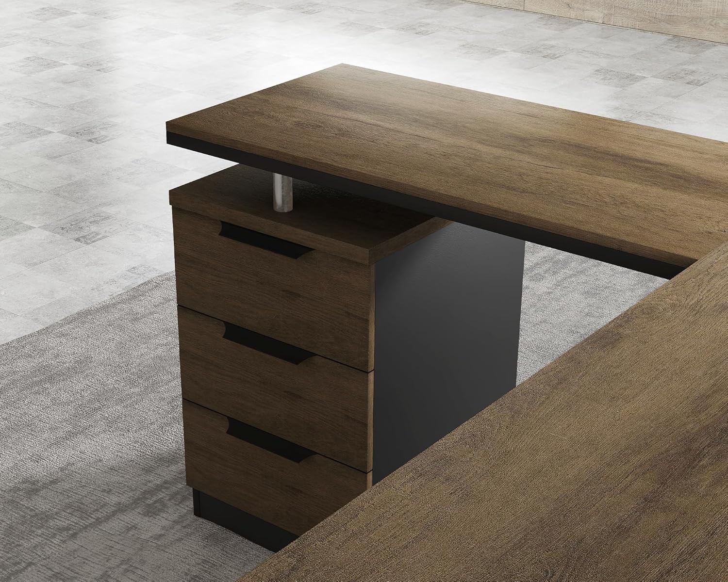 70.9″ Executive Desk with File Cabinet Large L-Shaped Home Office Computer Desk