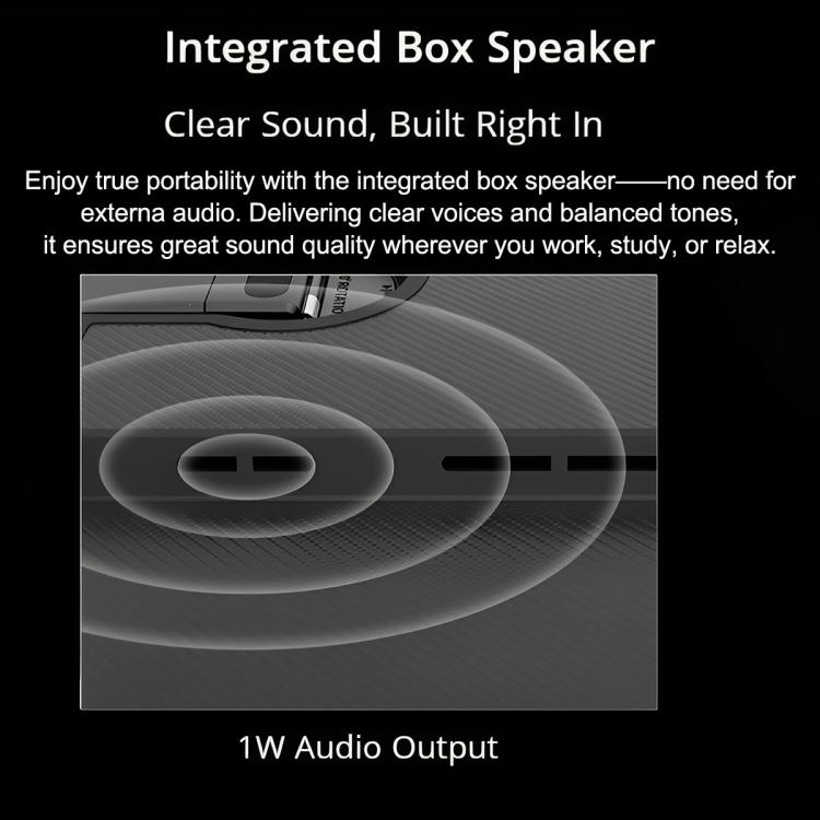 4. Built-in Box Speaker: Enjoy true portability with the integrated box speaker, no need for external audio. Delivering clear voices and balanced tones, it ensures great sound quality wherever you work, study, or relax.