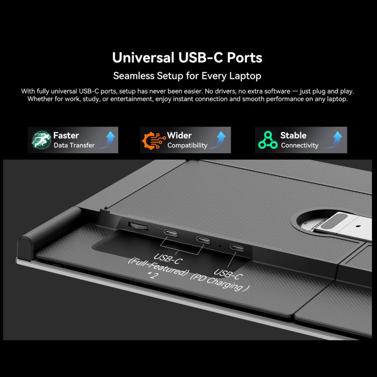 5. Universal USB-C Ports: With fully universal USB-C ports, no drivers, no extra software, just plug and play. Whether for work, study, or entertainment, enjoy instant connection and smooth performance on any laptop.