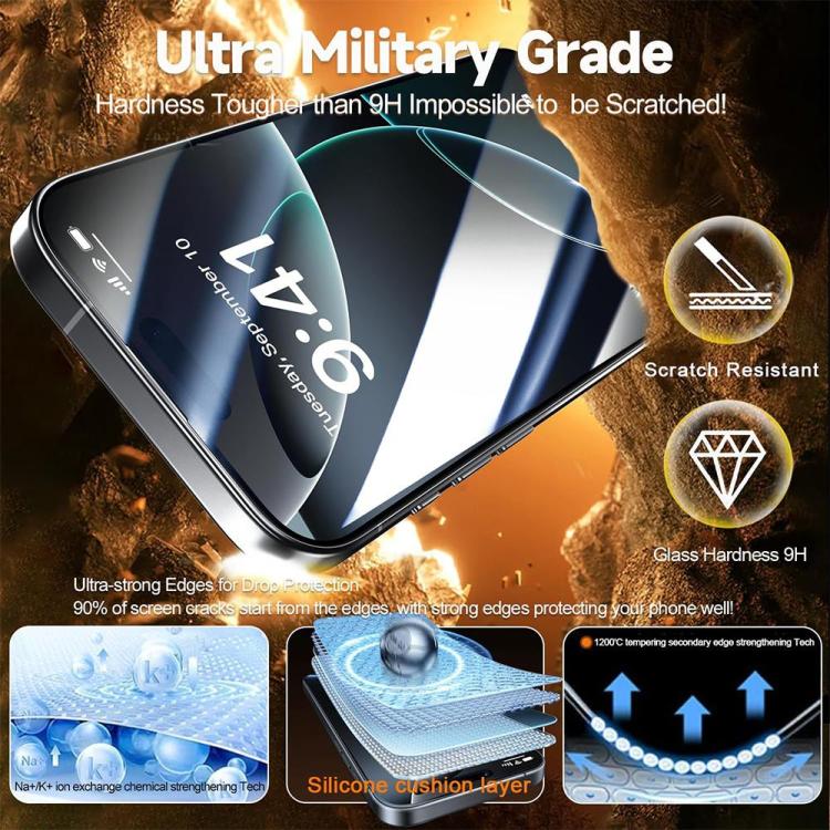 1. Ultra-high-quality protection: Adopts military-grade strengthening technology with hardness exceeding 9H, it effectively resists scratches and drops, reducing 90% of the risk of screen edge cracking.