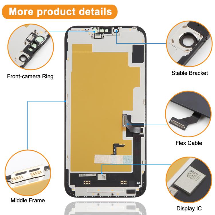 1. Replacement LCD display + touch screen digitizer assembly for iPhone 14 Plus.