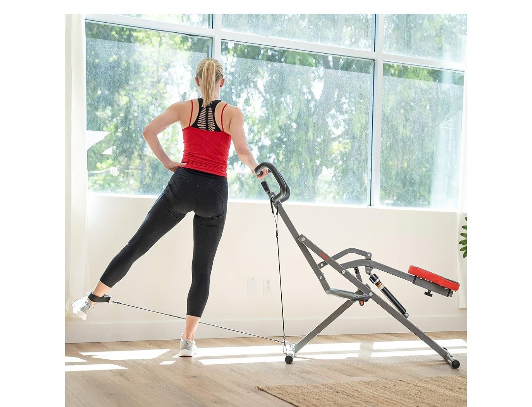 The Sunny Health & Fitness Row-N-Ride, Full Body Combo Squat Machine is a versatile home gym equipment designed for strength training. This unique machine combines rowing and squatting movements to provide a full-body workout. The adjustable features allow users to customize their workout intensity and range of motion, making it suitable for various fitness levels. With its compact design and sleek black color, this machine is perfect for gym and training activities, offering a convenient and efficient way to achieve fitness goals at home.